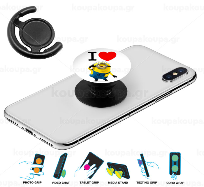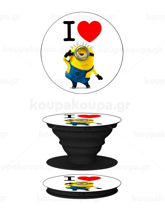 I love by minion, Phone Holders Stand Μαύρο Βάση Στήριξης Κινητού στο Χέρι