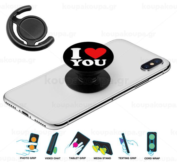 I LOVE YOU, Phone Holders Stand Μαύρο Βάση Στήριξης Κινητού στο Χέρι