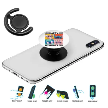 Lilo & Stitch Happy valentines day, Phone Holders Stand Μαύρο Βάση Στήριξης Κινητού στο Χέρι