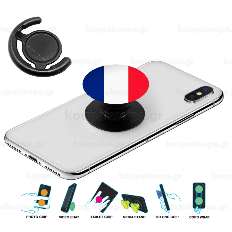 France flag, Phone Holders Stand Μαύρο Βάση Στήριξης Κινητού στο Χέρι