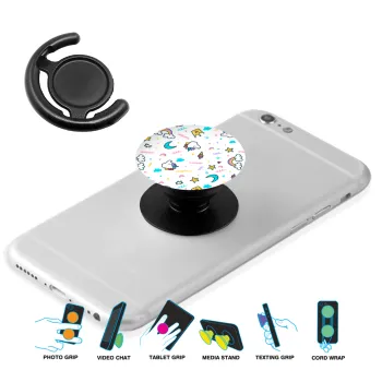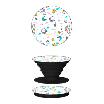 Unicorn pattern white, Phone Holders Stand Μαύρο Βάση Στήριξης Κινητού στο Χέρι