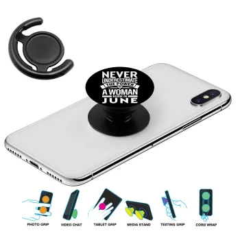 Never Underestimate the poer of a Woman born in..., Phone Holders Stand Μαύρο Βάση Στήριξης Κινητού στο Χέρι