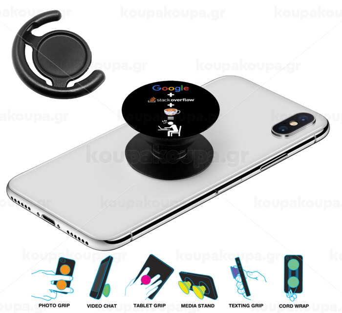 Google + Stack overflow + Coffee, Phone Holders Stand Μαύρο Βάση Στήριξης Κινητού στο Χέρι