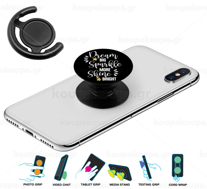 Dream big, Sparkle more, Shine bright, Phone Holders Stand Μαύρο Βάση Στήριξης Κινητού στο Χέρι