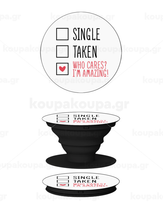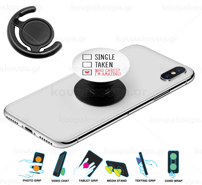 Single, Taken, Who cares i'm amazing, Phone Holders Stand Μαύρο Βάση Στήριξης Κινητού στο Χέρι