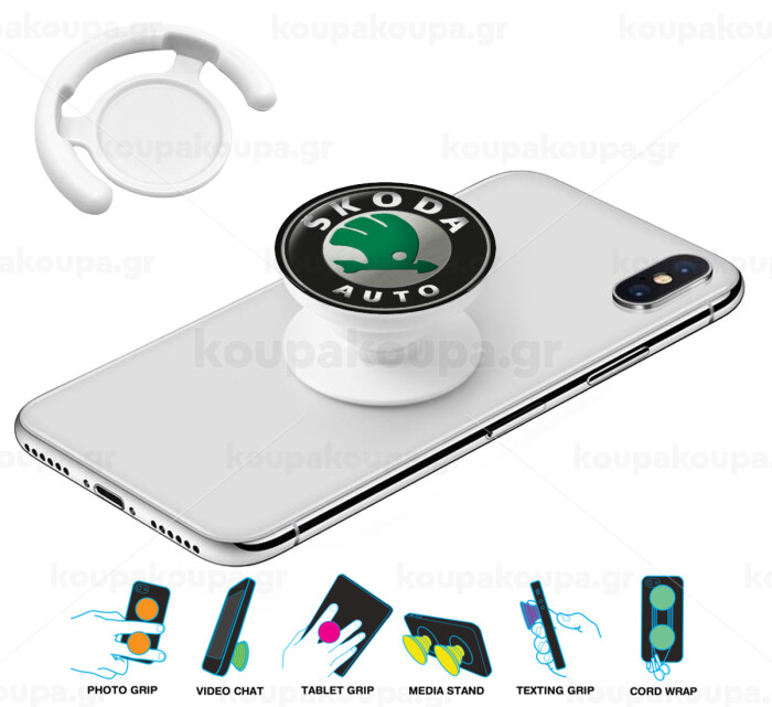 SKODA, Phone Holders Stand Λευκό Βάση Στήριξης Κινητού στο Χέρι