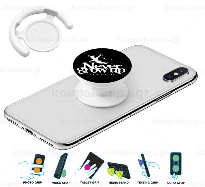 Peter pan, Never Grow UP, Phone Holders Stand Λευκό Βάση Στήριξης Κινητού στο Χέρι
