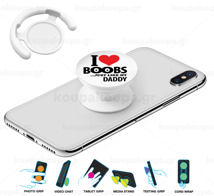 I Love boobs ...just like my daddy, Phone Holders Stand Λευκό Βάση Στήριξης Κινητού στο Χέρι