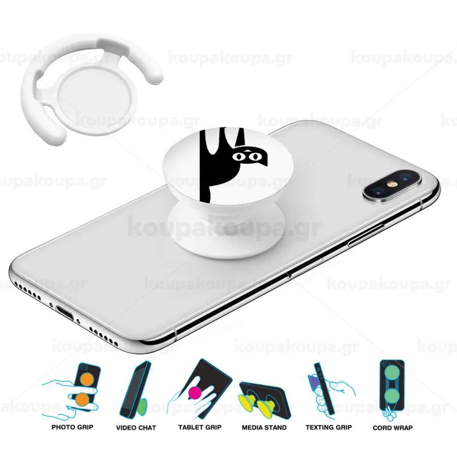 Cat upside down, Phone Holders Stand Λευκό Βάση Στήριξης Κινητού στο Χέρι