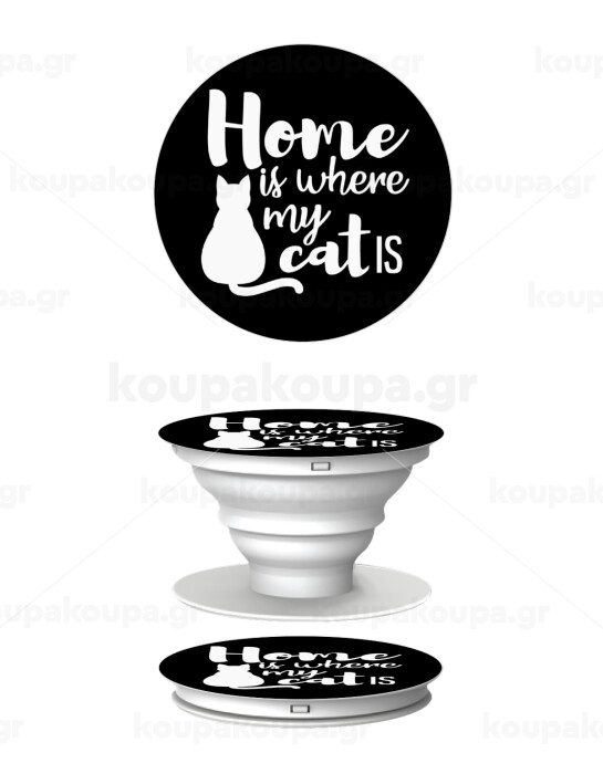 Home is where my cat is!, Phone Holders Stand Λευκό Βάση Στήριξης Κινητού στο Χέρι