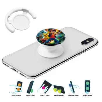 Ash Ketchum & Pikachu, Phone Holders Stand Λευκό Βάση Στήριξης Κινητού στο Χέρι