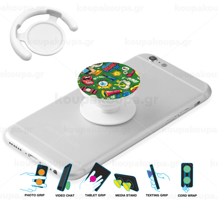 Pop art colorful seamless, Phone Holders Stand Λευκό Βάση Στήριξης Κινητού στο Χέρι