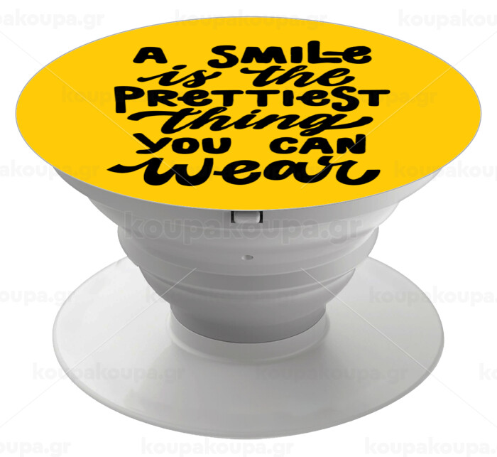 A smile is the prettiest thing you can wear, Phone Holders Stand Λευκό Βάση Στήριξης Κινητού στο Χέρι