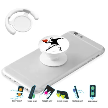 Banksy (The heart thrower), Phone Holders Stand Λευκό Βάση Στήριξης Κινητού στο Χέρι