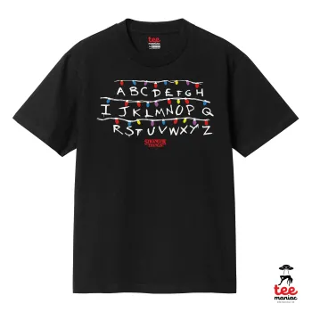 Stranger Things ABC, Κλασικό T-Shirt, διπλής ραφής, χωρίς πλευρικές ραφές ΜΑΥΡΟ από 100% βαμβάκι. Vegan & OEKO-TEX πιστοποιημένο.