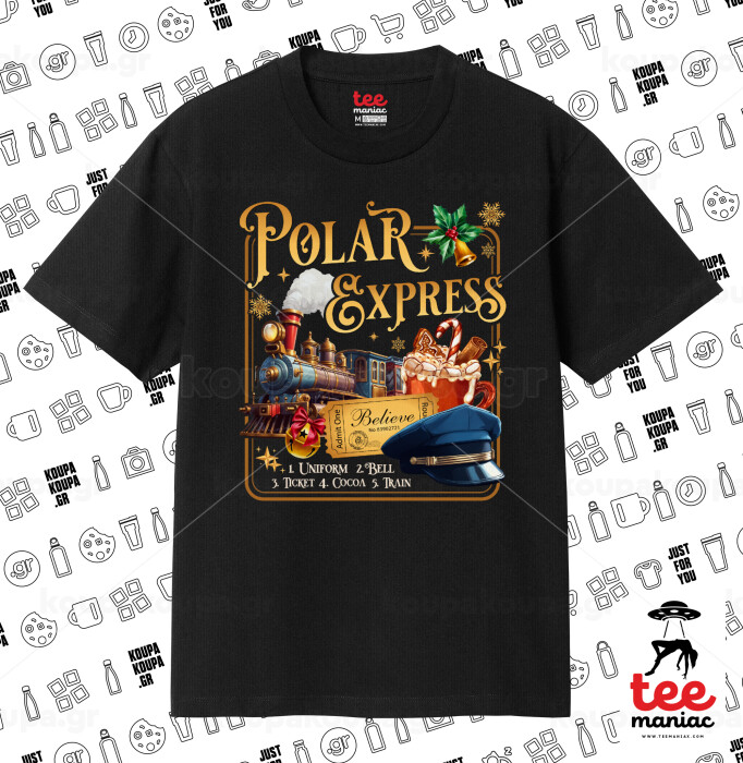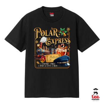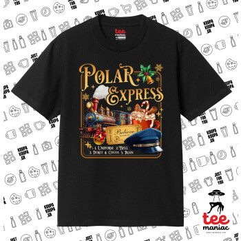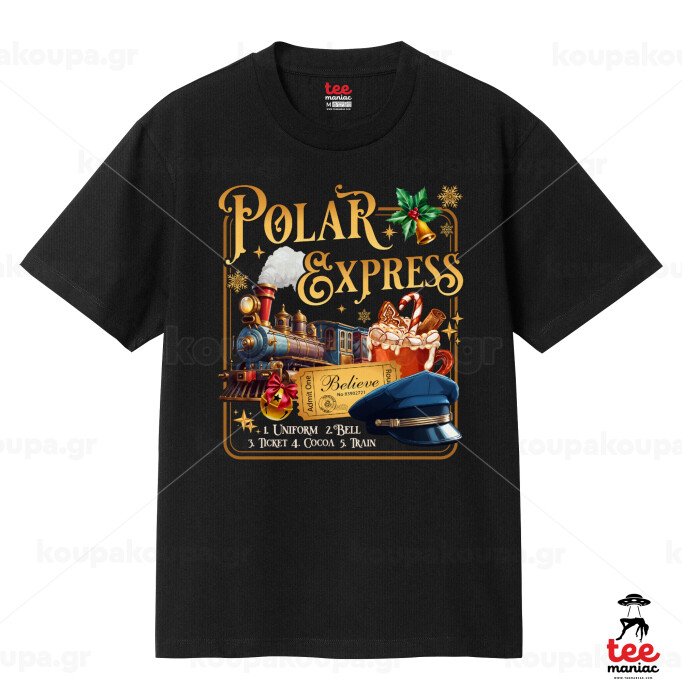 The Polar Express, Κλασικό T-Shirt, διπλής ραφής, χωρίς πλευρικές ραφές ΜΑΥΡΟ από 100% βαμβάκι. Vegan & OEKO-TEX πιστοποιημένο.