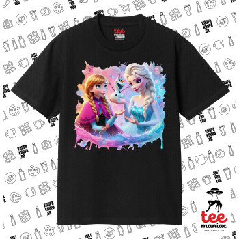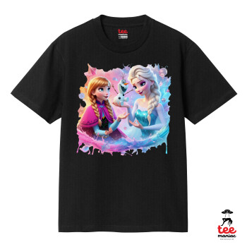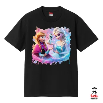 Έλσα & Άννα, Κλασικό T-Shirt, διπλής ραφής, χωρίς πλευρικές ραφές ΜΑΥΡΟ από 100% βαμβάκι. Vegan & OEKO-TEX πιστοποιημένο.