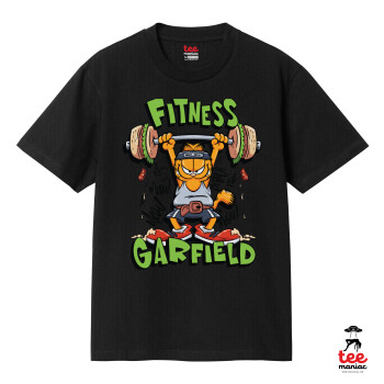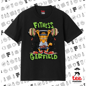 Garfield Fitness, Κλασικό T-Shirt, διπλής ραφής, χωρίς πλευρικές ραφές ΜΑΥΡΟ από 100% βαμβάκι. Vegan & OEKO-TEX πιστοποιημένο.