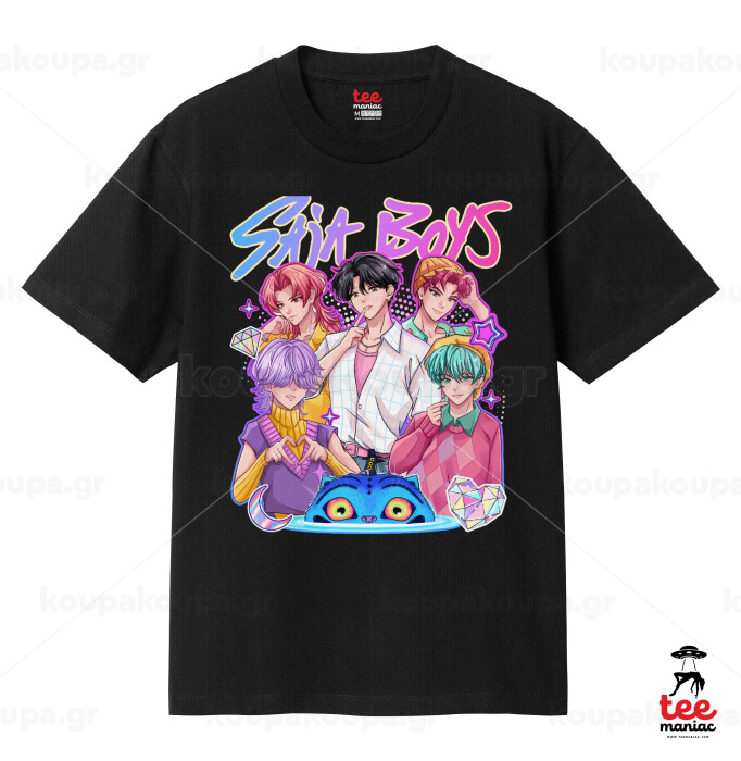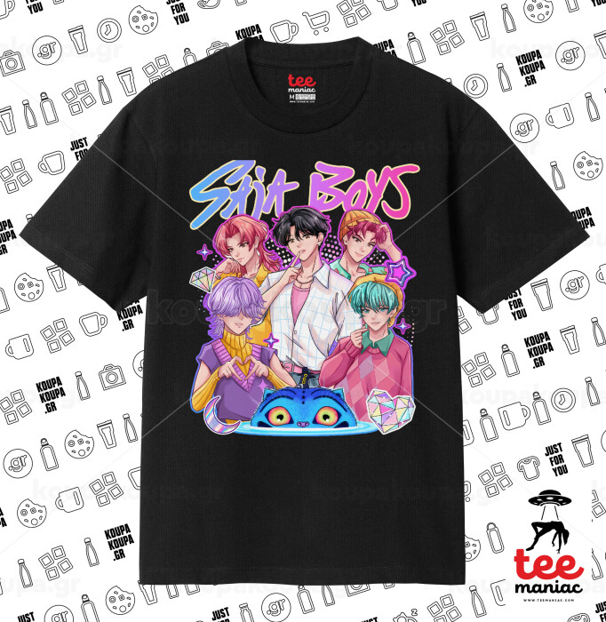 Huntrix Saja Boys, Κλασικό T-Shirt, διπλής ραφής, χωρίς πλευρικές ραφές ΜΑΥΡΟ από 100% βαμβάκι. Vegan & OEKO-TEX πιστοποιημένο.