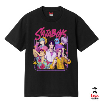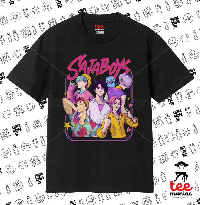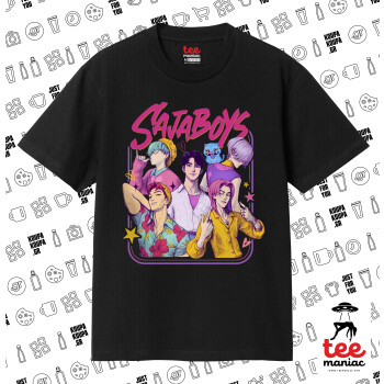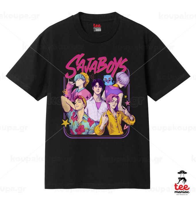 Huntrix Saja Boys, Κλασικό T-Shirt, διπλής ραφής, χωρίς πλευρικές ραφές ΜΑΥΡΟ από 100% βαμβάκι. Vegan & OEKO-TEX πιστοποιημένο.