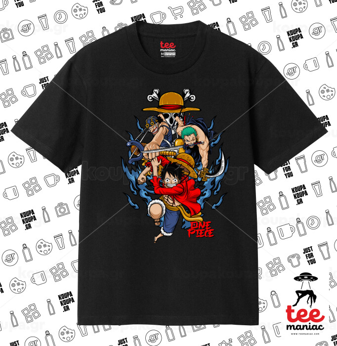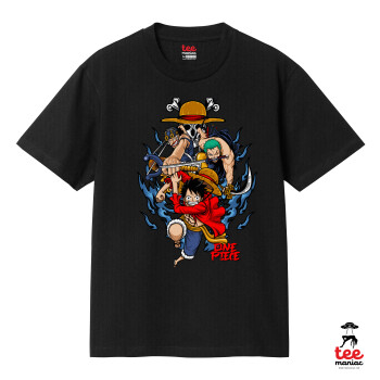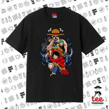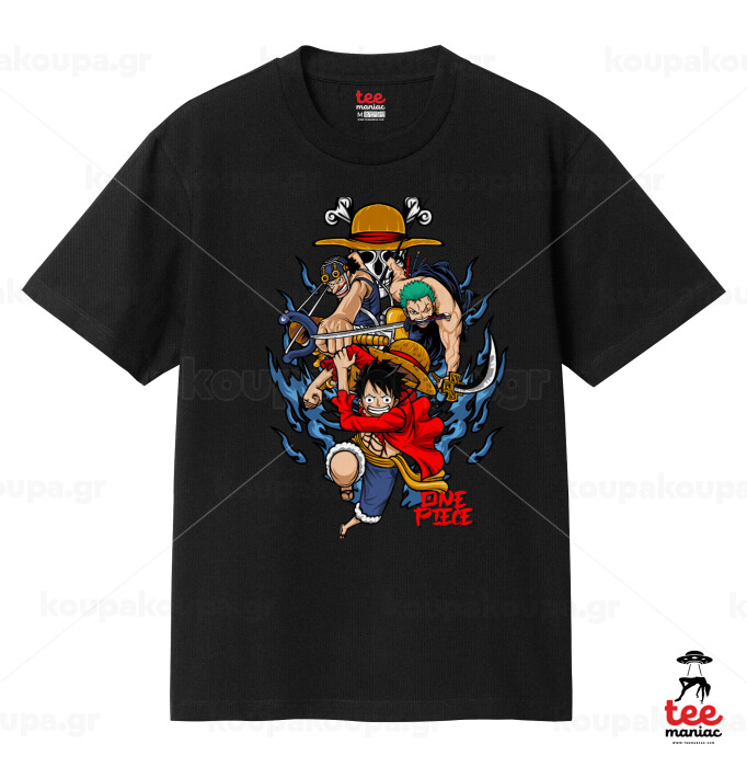 One Piece, Κλασικό T-Shirt, διπλής ραφής, χωρίς πλευρικές ραφές ΜΑΥΡΟ από 100% βαμβάκι. Vegan & OEKO-TEX πιστοποιημένο.