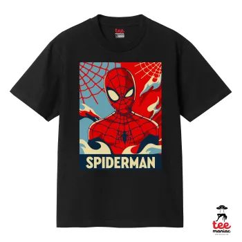 Spiderman kid, Κλασικό T-Shirt, διπλής ραφής, χωρίς πλευρικές ραφές ΜΑΥΡΟ από 100% βαμβάκι. Vegan & OEKO-TEX πιστοποιημένο.