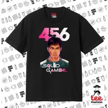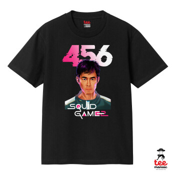 Squid game 456 Gi-Hun, Κλασικό T-Shirt, διπλής ραφής, χωρίς πλευρικές ραφές ΜΑΥΡΟ από 100% βαμβάκι. Vegan & OEKO-TEX πιστοποιημένο.