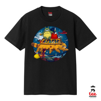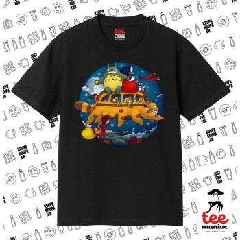 Totoro Catbus, Κλασικό T-Shirt, διπλής ραφής, χωρίς πλευρικές ραφές ΜΑΥΡΟ από 100% βαμβάκι. Vegan & OEKO-TEX πιστοποιημένο.