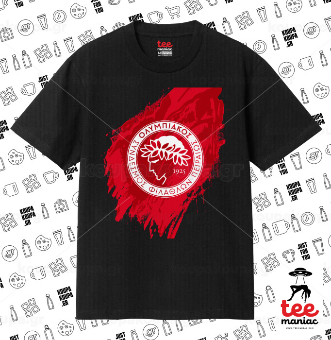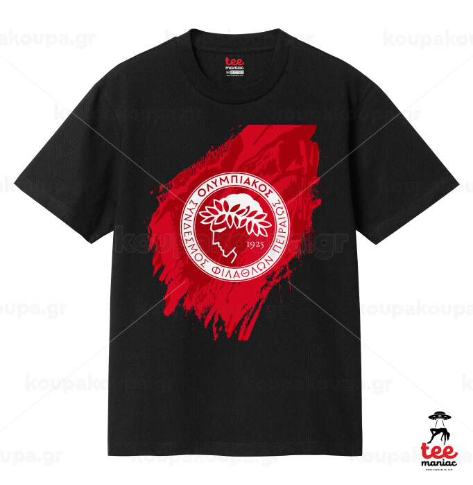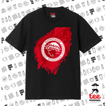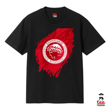 Olympiacos F.C., Κλασικό T-Shirt, διπλής ραφής, χωρίς πλευρικές ραφές ΜΑΥΡΟ από 100% βαμβάκι. Vegan & OEKO-TEX πιστοποιημένο.