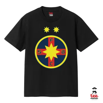 FC Steaua Bucuresti (FCSB), Κλασικό T-Shirt, διπλής ραφής, χωρίς πλευρικές ραφές ΜΑΥΡΟ από 100% βαμβάκι. Vegan & OEKO-TEX πιστοποιημένο.