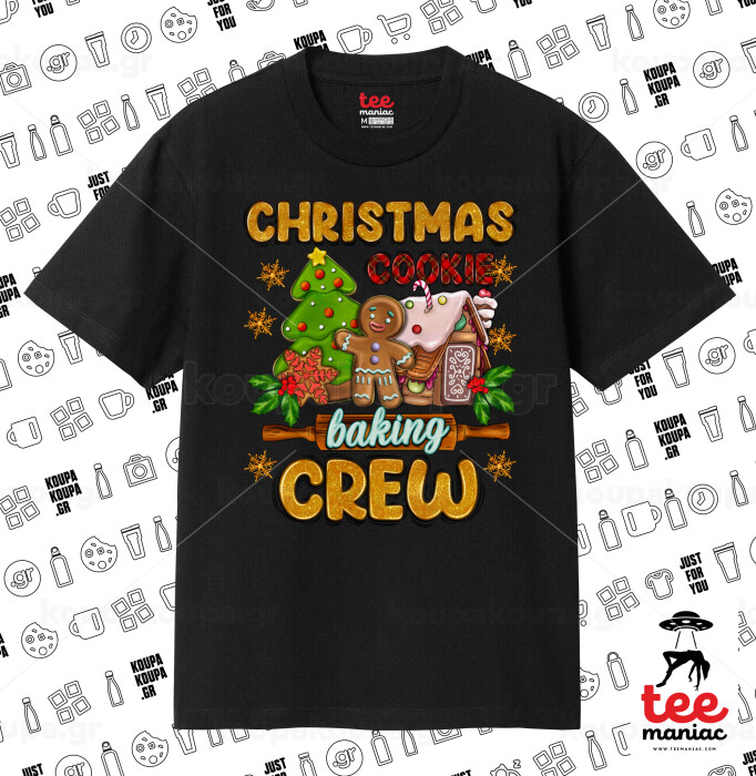Christmas Cookie Baking Crew, Κλασικό T-Shirt, διπλής ραφής, χωρίς πλευρικές ραφές ΜΑΥΡΟ από 100% βαμβάκι. Vegan & OEKO-TEX πιστοποιημένο.
