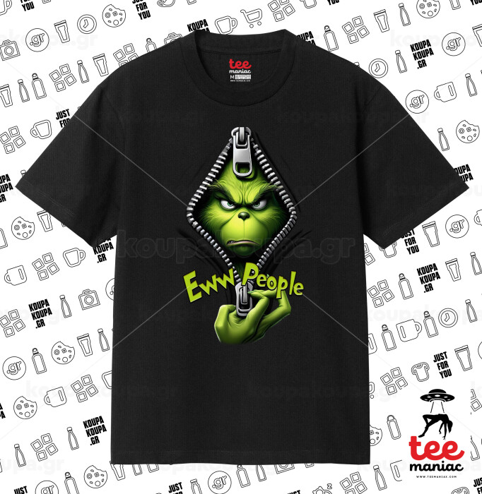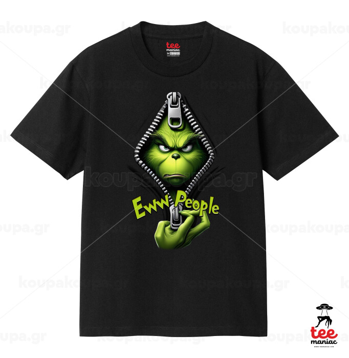 Grinch, eww people, Κλασικό T-Shirt, διπλής ραφής, χωρίς πλευρικές ραφές ΜΑΥΡΟ από 100% βαμβάκι. Vegan & OEKO-TEX πιστοποιημένο.