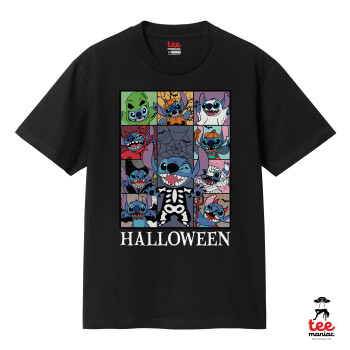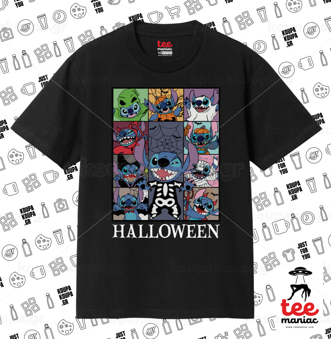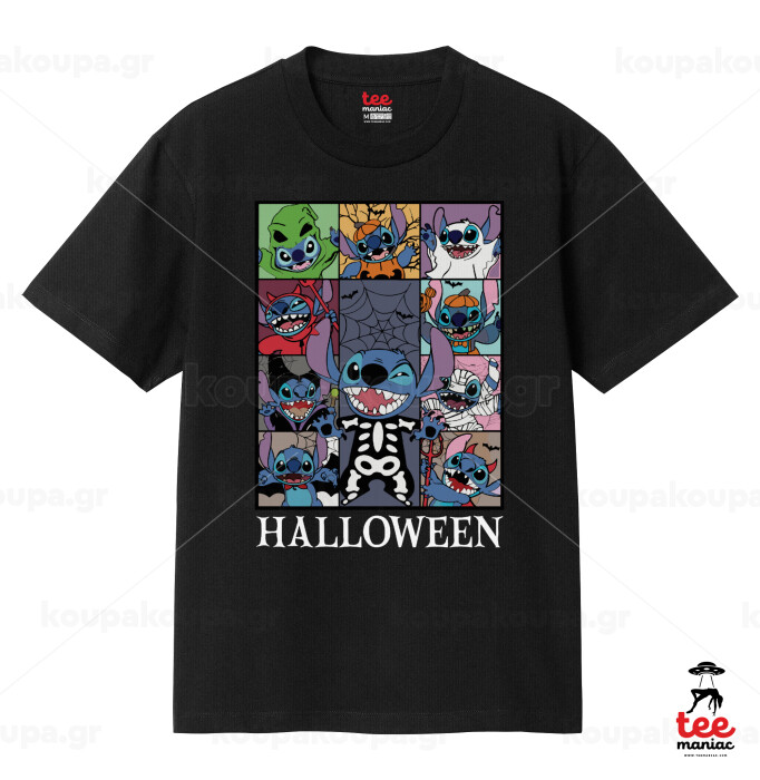 Stitch Halloween, Κλασικό T-Shirt, διπλής ραφής, χωρίς πλευρικές ραφές ΜΑΥΡΟ από 100% βαμβάκι. Vegan & OEKO-TEX πιστοποιημένο.
