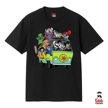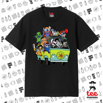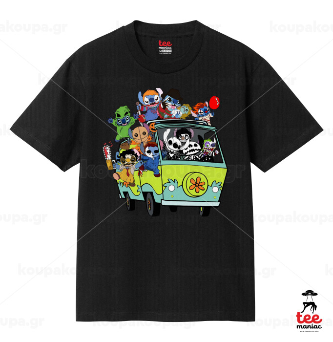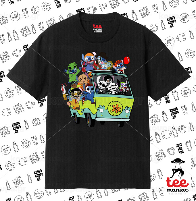 Stitch Halloween scooby car, Κλασικό T-Shirt, διπλής ραφής, χωρίς πλευρικές ραφές ΜΑΥΡΟ από 100% βαμβάκι. Vegan & OEKO-TEX πιστοποιημένο.