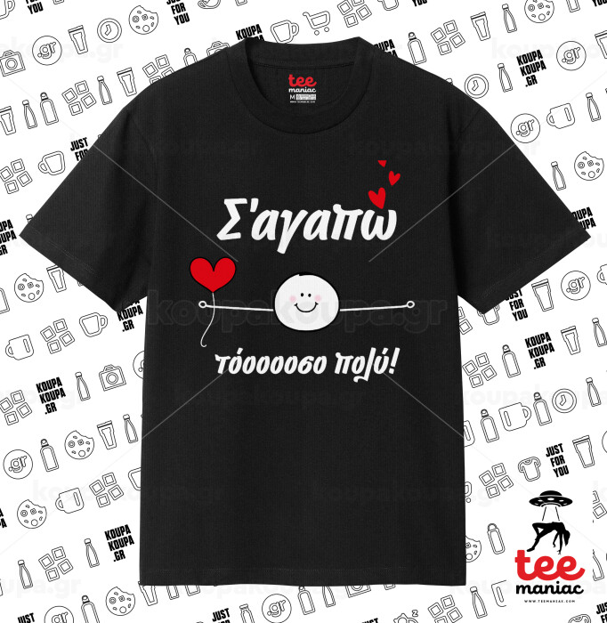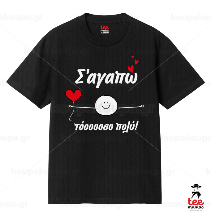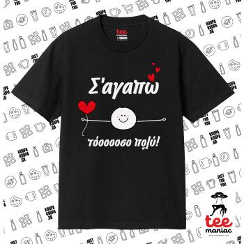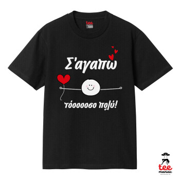 Σ΄αγαπώ τόοοοσο πολύ (Αγόρι)!!!, Κλασικό T-Shirt, διπλής ραφής, χωρίς πλευρικές ραφές ΜΑΥΡΟ από 100% βαμβάκι. Vegan & OEKO-TEX πιστοποιημένο.