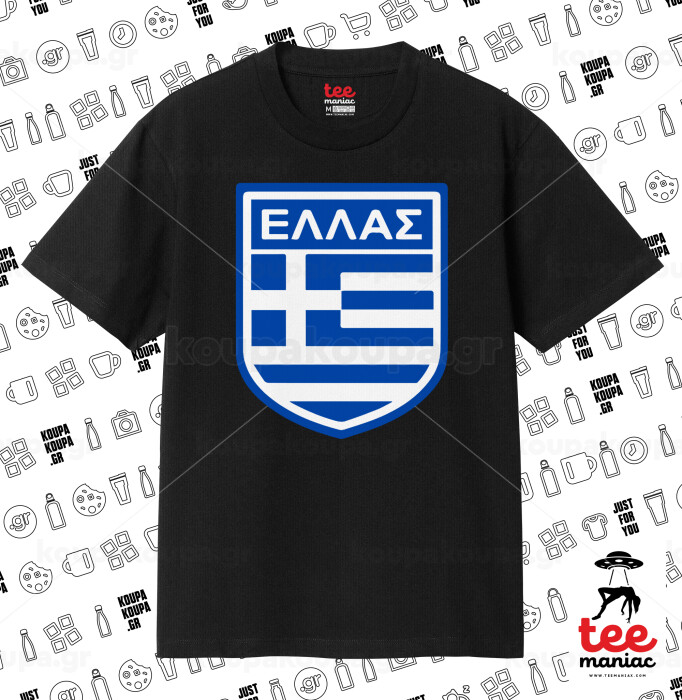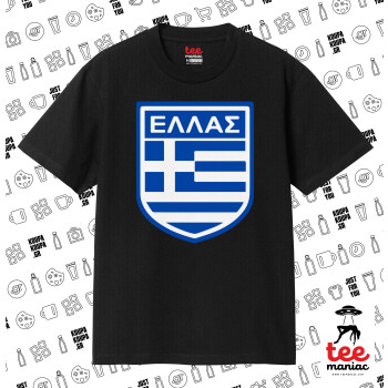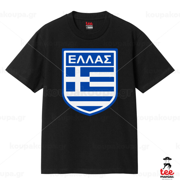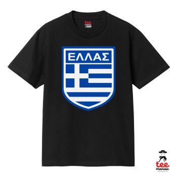 Ελλάς, Κλασικό T-Shirt, διπλής ραφής, χωρίς πλευρικές ραφές ΜΑΥΡΟ από 100% βαμβάκι. Vegan & OEKO-TEX πιστοποιημένο.