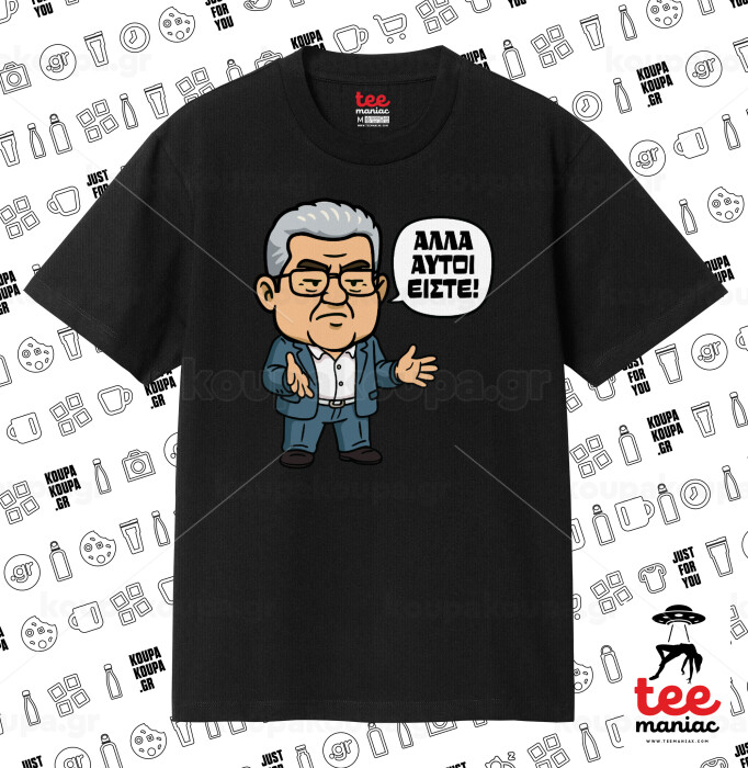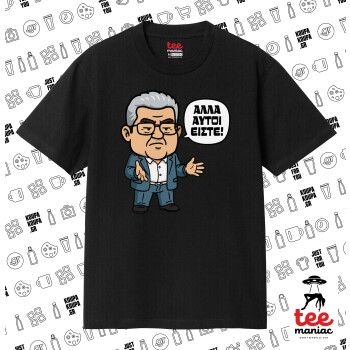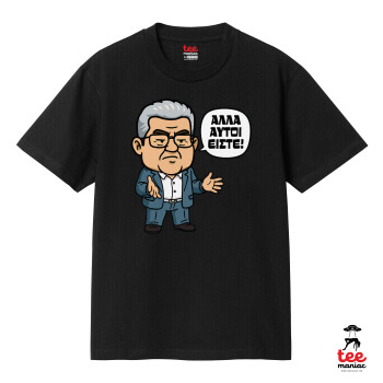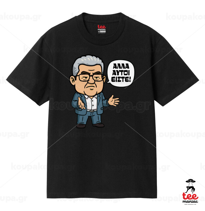 Κουτσούμπας, "Αλλά αυτοί είστε!", Κλασικό T-Shirt, διπλής ραφής, χωρίς πλευρικές ραφές ΜΑΥΡΟ από 100% βαμβάκι. Vegan & OEKO-TEX πιστοποιημένο.