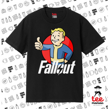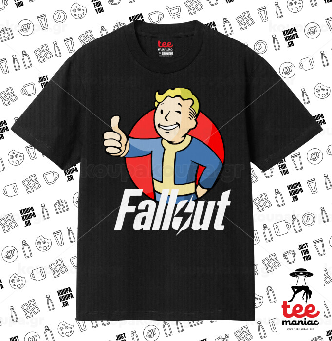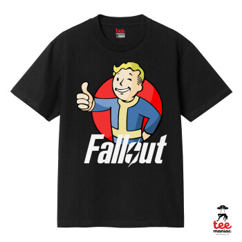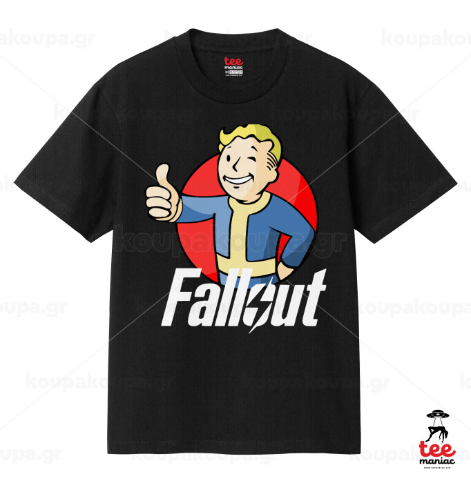 Fallout Vault Boy, Κλασικό T-Shirt, διπλής ραφής, χωρίς πλευρικές ραφές ΜΑΥΡΟ από 100% βαμβάκι. Vegan & OEKO-TEX πιστοποιημένο.