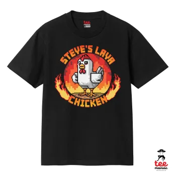 Steve's Lava Chicken, Κλασικό T-Shirt, διπλής ραφής, χωρίς πλευρικές ραφές ΜΑΥΡΟ από 100% βαμβάκι. Vegan & OEKO-TEX πιστοποιημένο.