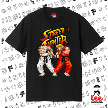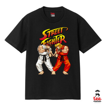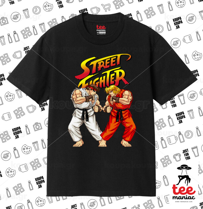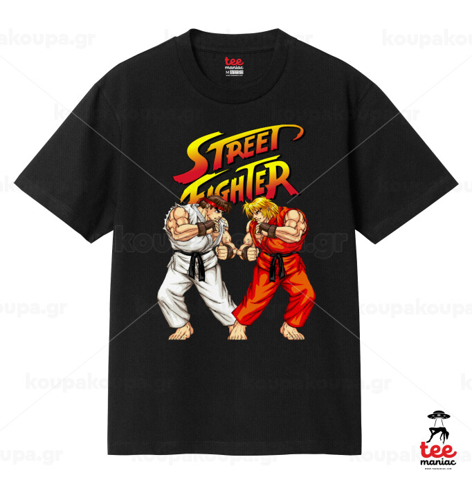 Street fighter, Κλασικό T-Shirt, διπλής ραφής, χωρίς πλευρικές ραφές ΜΑΥΡΟ από 100% βαμβάκι. Vegan & OEKO-TEX πιστοποιημένο.