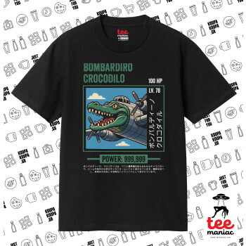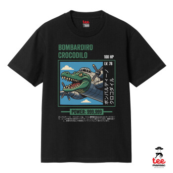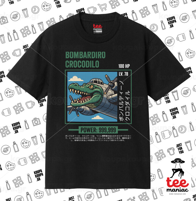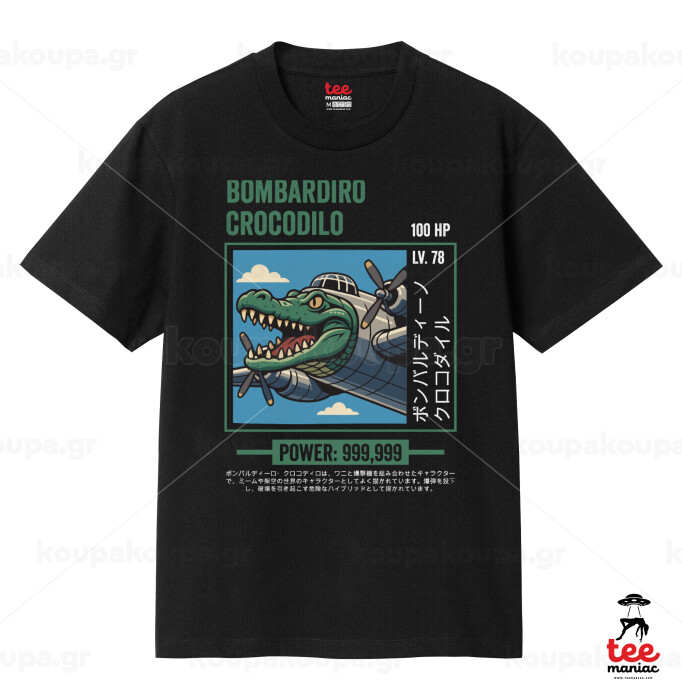 Bombardiro Crocodilo, Κλασικό T-Shirt, διπλής ραφής, χωρίς πλευρικές ραφές ΜΑΥΡΟ από 100% βαμβάκι. Vegan & OEKO-TEX πιστοποιημένο.