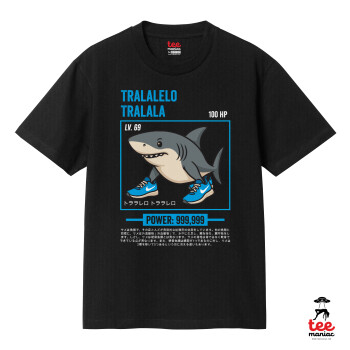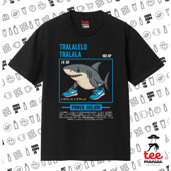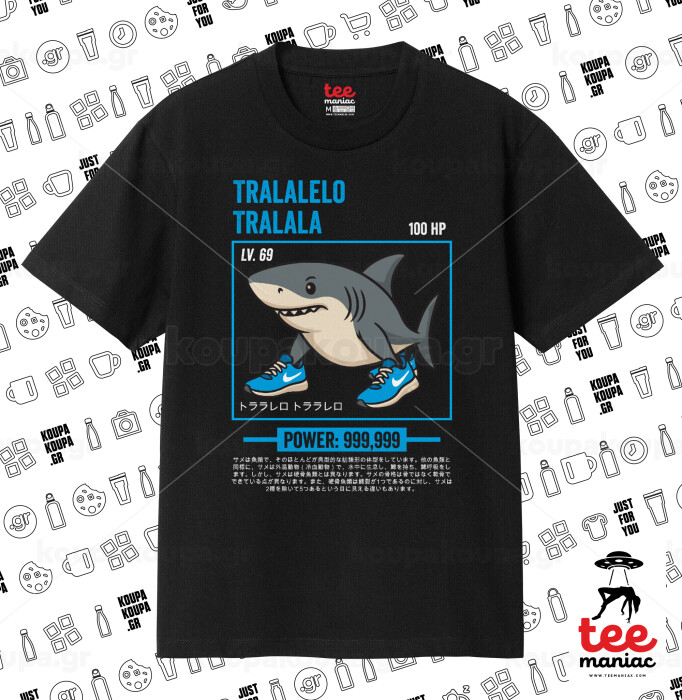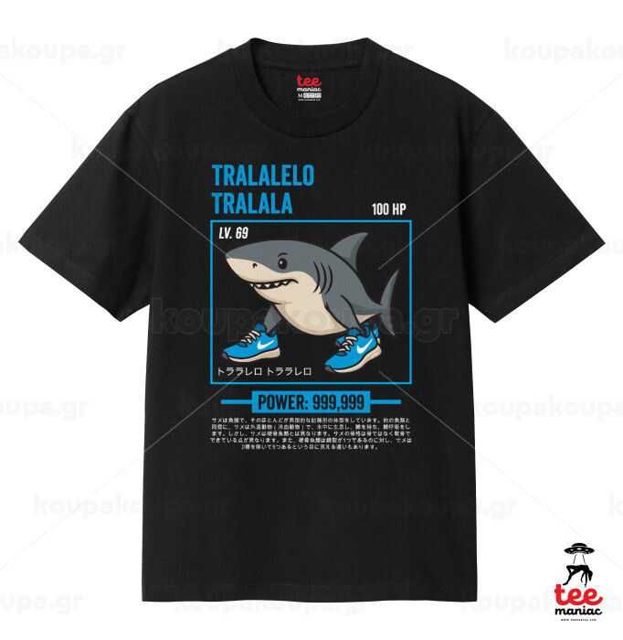 Tralalero Tralala, Κλασικό T-Shirt, διπλής ραφής, χωρίς πλευρικές ραφές ΜΑΥΡΟ από 100% βαμβάκι. Vegan & OEKO-TEX πιστοποιημένο.