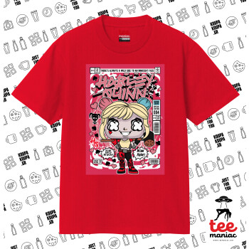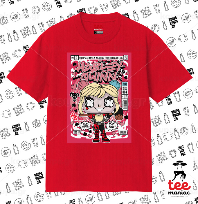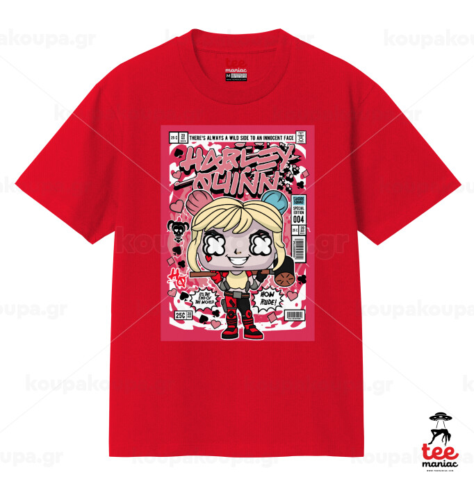 Harley Quinn (Χάρλεϊ Κουίν), Κλασικό T-Shirt, διπλής ραφής, χωρίς πλευρικές ραφές ΚΟΚΚΙΝΟ από 100% βαμβάκι. Vegan & OEKO-TEX πιστοποιημένο.