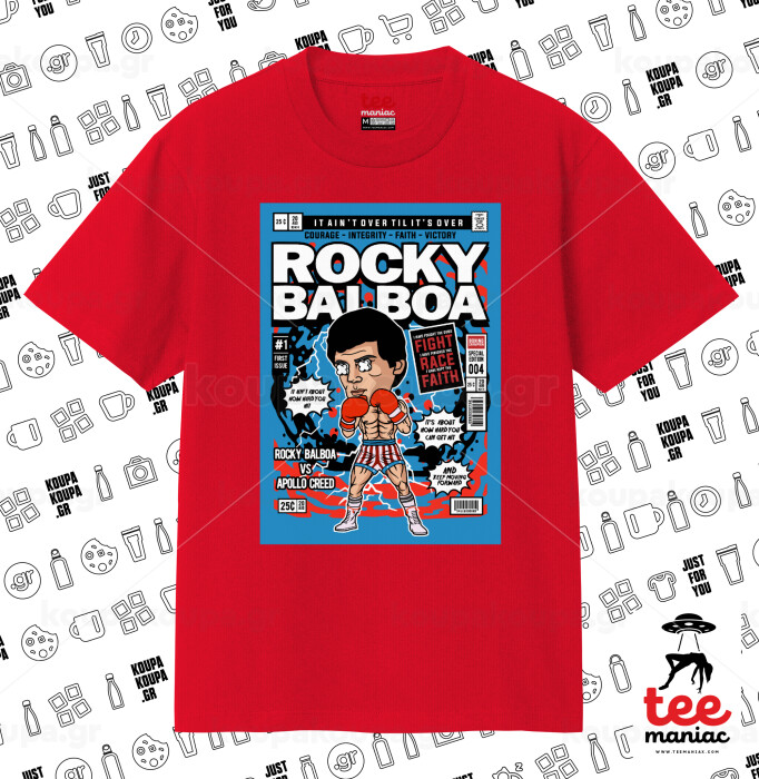 Rocky Balboa, Κλασικό T-Shirt, διπλής ραφής, χωρίς πλευρικές ραφές ΚΟΚΚΙΝΟ από 100% βαμβάκι. Vegan & OEKO-TEX πιστοποιημένο.