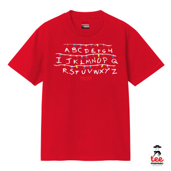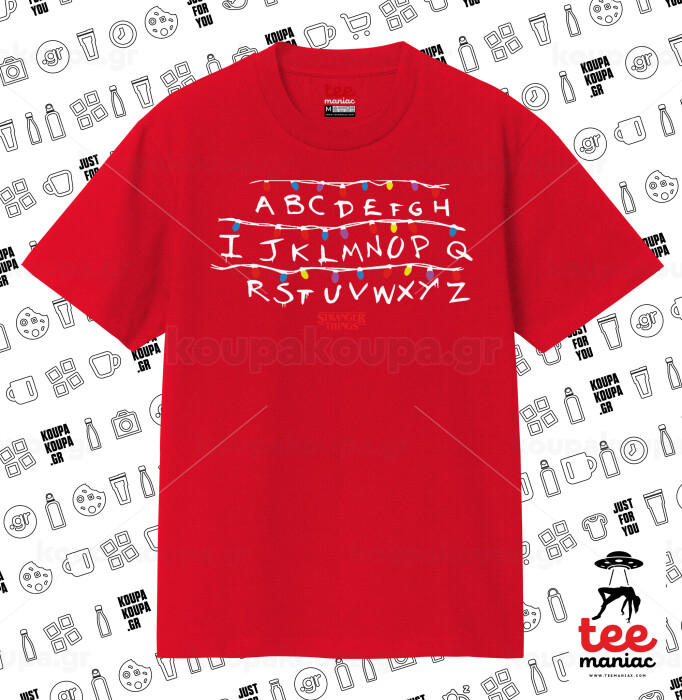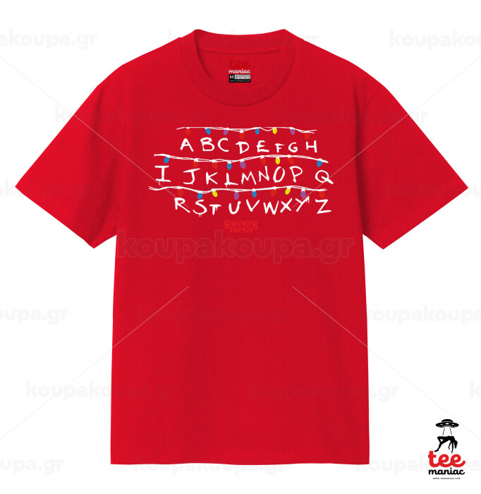 Stranger Things ABC, Κλασικό T-Shirt, διπλής ραφής, χωρίς πλευρικές ραφές ΚΟΚΚΙΝΟ από 100% βαμβάκι. Vegan & OEKO-TEX πιστοποιημένο.