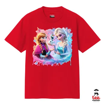 Έλσα & Άννα, Κλασικό T-Shirt, διπλής ραφής, χωρίς πλευρικές ραφές ΚΟΚΚΙΝΟ από 100% βαμβάκι. Vegan & OEKO-TEX πιστοποιημένο.