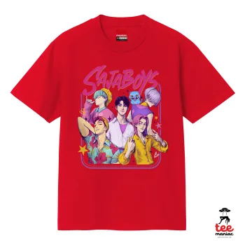 Huntrix Saja Boys, Κλασικό T-Shirt, διπλής ραφής, χωρίς πλευρικές ραφές ΚΟΚΚΙΝΟ από 100% βαμβάκι. Vegan & OEKO-TEX πιστοποιημένο.