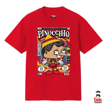 Pinocchio, Κλασικό T-Shirt, διπλής ραφής, χωρίς πλευρικές ραφές ΚΟΚΚΙΝΟ από 100% βαμβάκι. Vegan & OEKO-TEX πιστοποιημένο.
