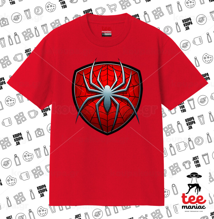 Spider-man, Κλασικό T-Shirt, διπλής ραφής, χωρίς πλευρικές ραφές ΚΟΚΚΙΝΟ από 100% βαμβάκι. Vegan & OEKO-TEX πιστοποιημένο.