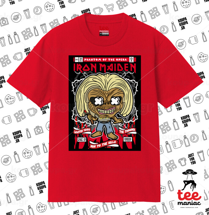 Iron maiden (eddie), Κλασικό T-Shirt, διπλής ραφής, χωρίς πλευρικές ραφές ΚΟΚΚΙΝΟ από 100% βαμβάκι. Vegan & OEKO-TEX πιστοποιημένο.